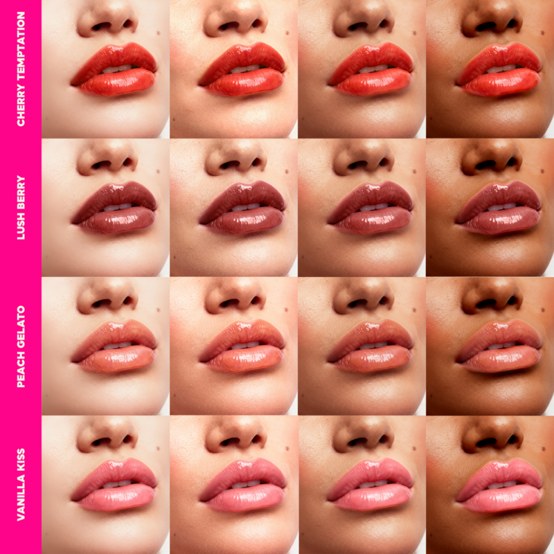زيوت الشفاه “جليزد” (Glazed) الخاصة بنا معززة بزيوت مغذية خاصة، زيت الجوجوبا، زيت الأفوكادو، وفيتامين E، التي تحافظ على شفاهك ناعمة، لامعة، وسلسة طوال اليوم والليل!